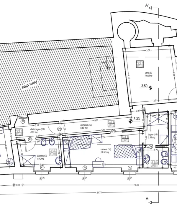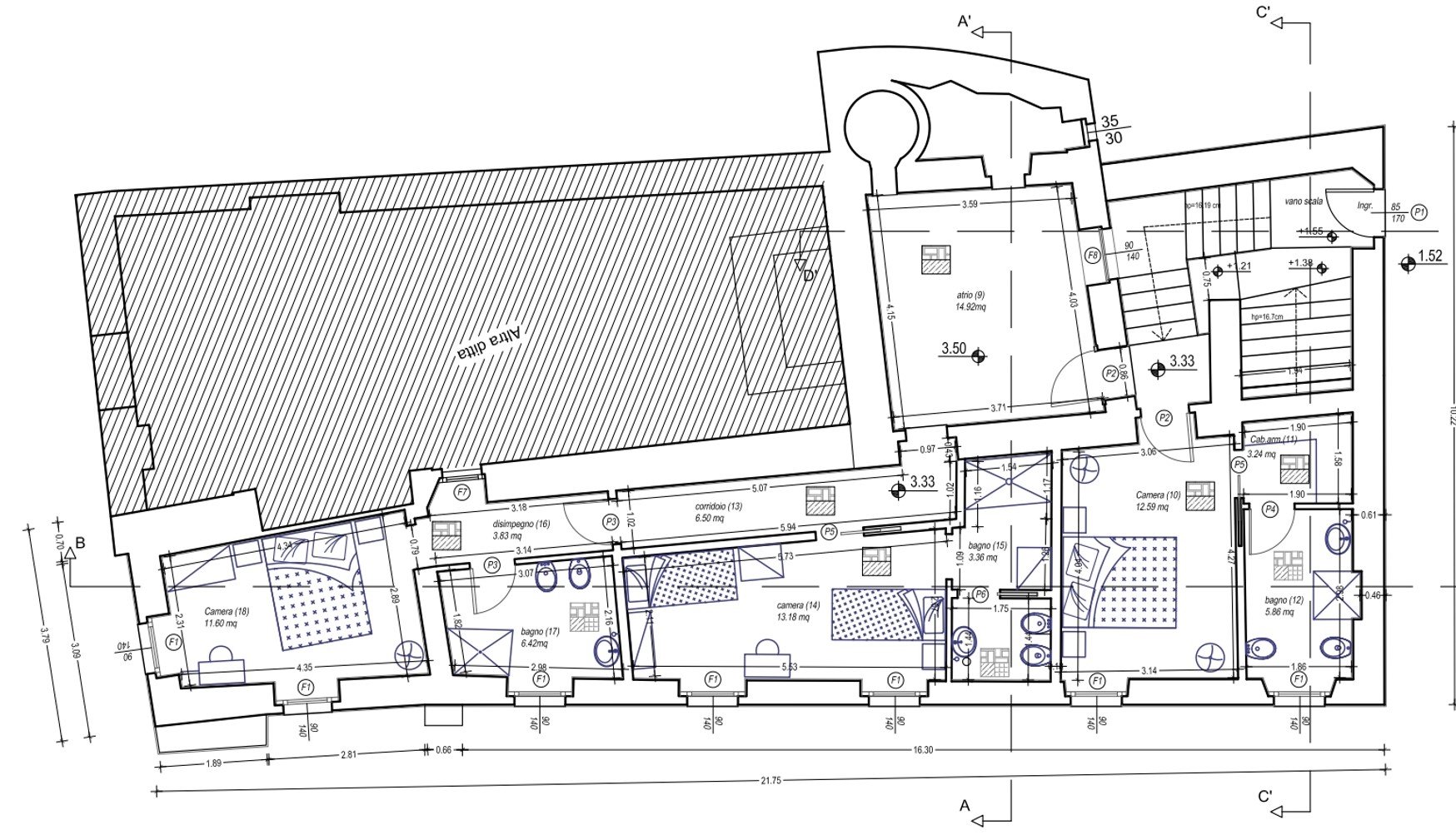 Il palazzo storico occupa una superficie approssimativa di 220 metri quadra...