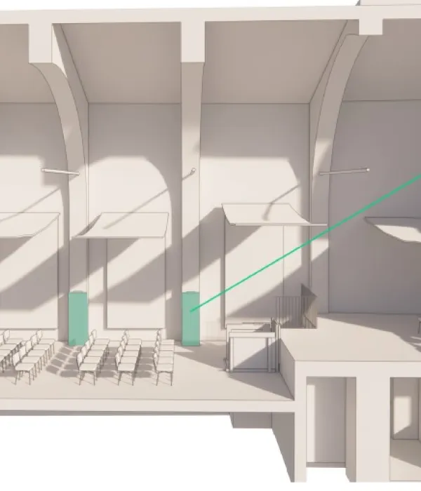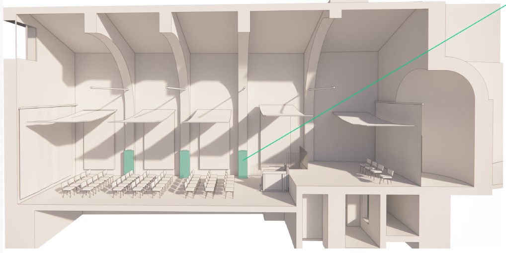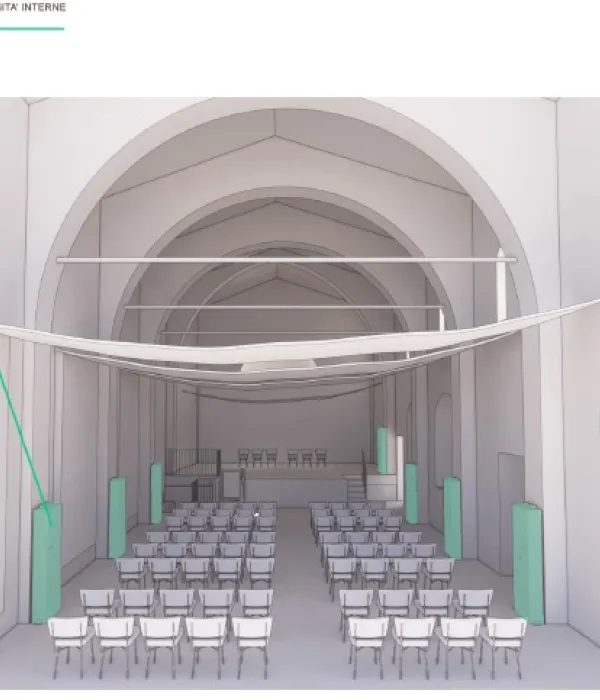 Inoltre, l'ambiente sarà dotato di attrezzature audiovisive e tecnologiche moderne, come schermi, proiettori, sistemi di amplificazione del suono e connettività Internet ad alta velocità, per supportare presentazioni efficaci e coinvolgenti.