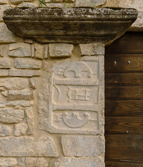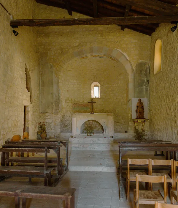 Sulla parete di destra dell’edificio più antico, circa due metri al di sotto del piano di calpestio, si nota una porticina murata, per cui forse la chiesa era provvista di una cripta.